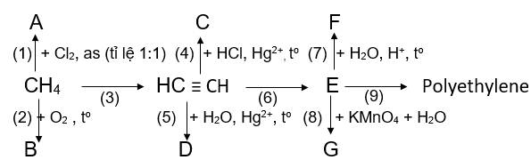 \(\xrightarrow[]{Hg^{2+},t^{o} }\) CH2 =CHCl