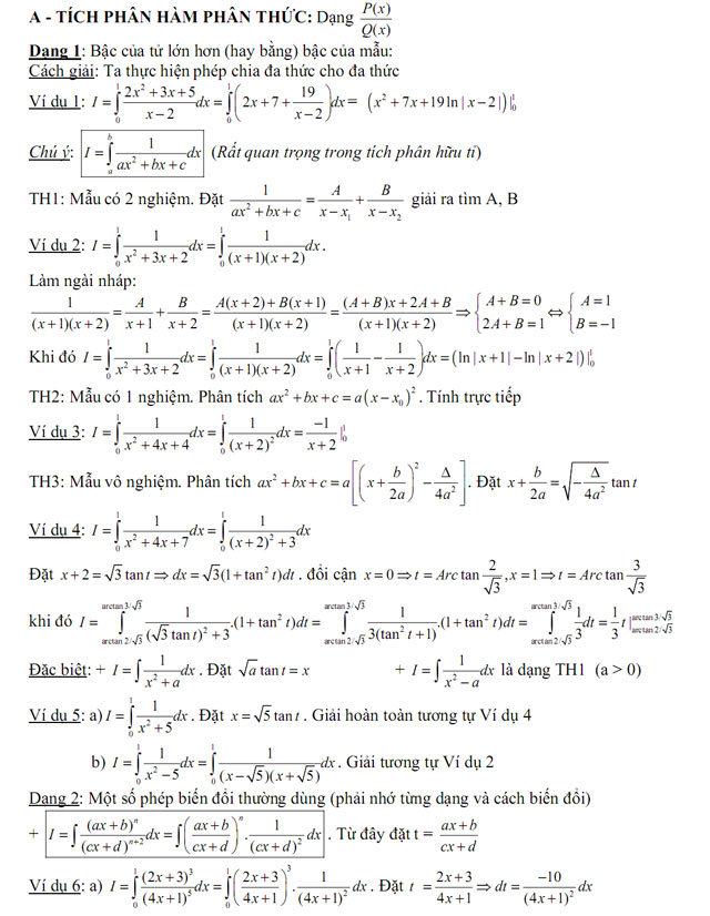 CÁC DẠNG TÍCH PHÂN VÀ CÁCH TÍNH