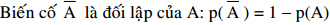 - Biến cố A và B đối lập nếu không cùng xảy ra. Khi đó, ta có: A ∩ B = Ø; p(A ∩ B) = 0; p(A υ B) = p(A) + p(B)