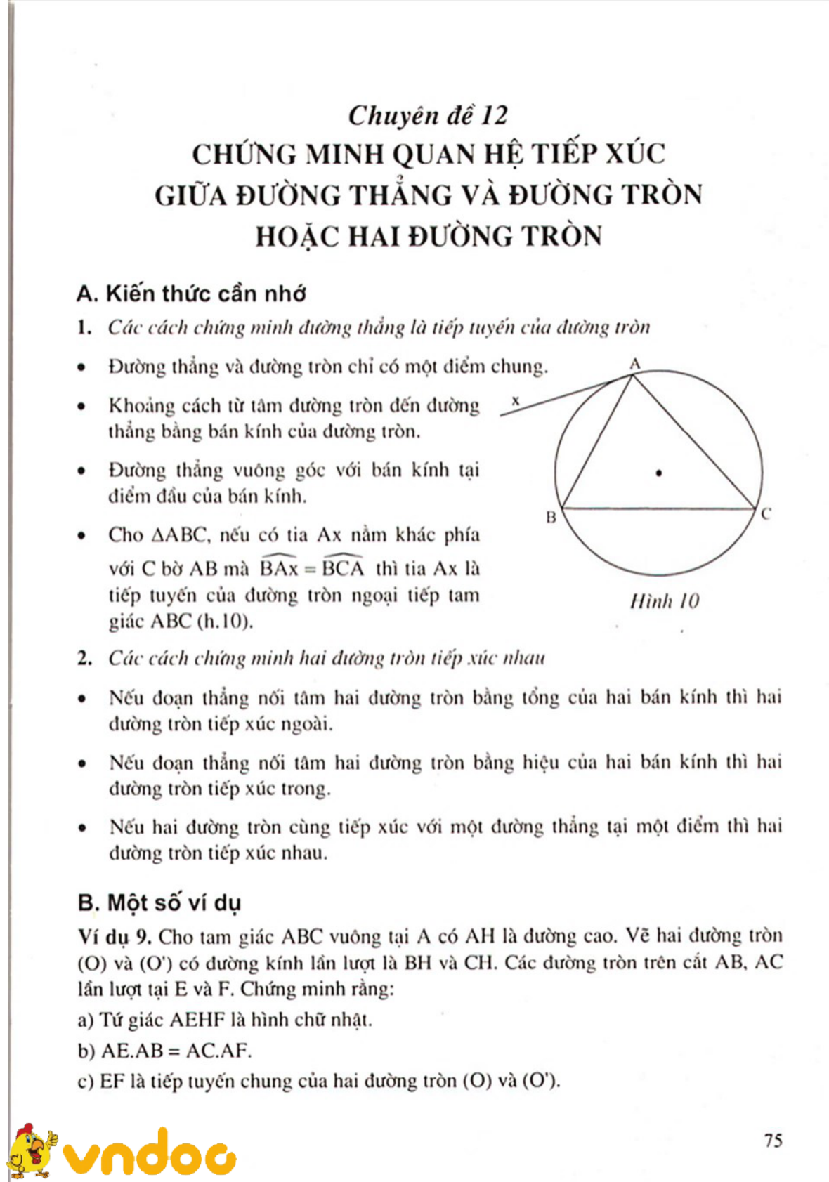 Ôn thi vào lớp 10 chuyên đề 12: Chứng minh quan hệ tiếp xúc giữa đường thẳng và đường tròn hoặc hai đường tròn được VnDoc.com sưu tầm nhằm giúp quá trình ôn tập và củng cố kiến thức chuẩn bị cho kì thi học kì mới môn Toán của các bạn học sinh lớp 9 trở nên thuận lợi hơn. Mời các bạn tham khảo