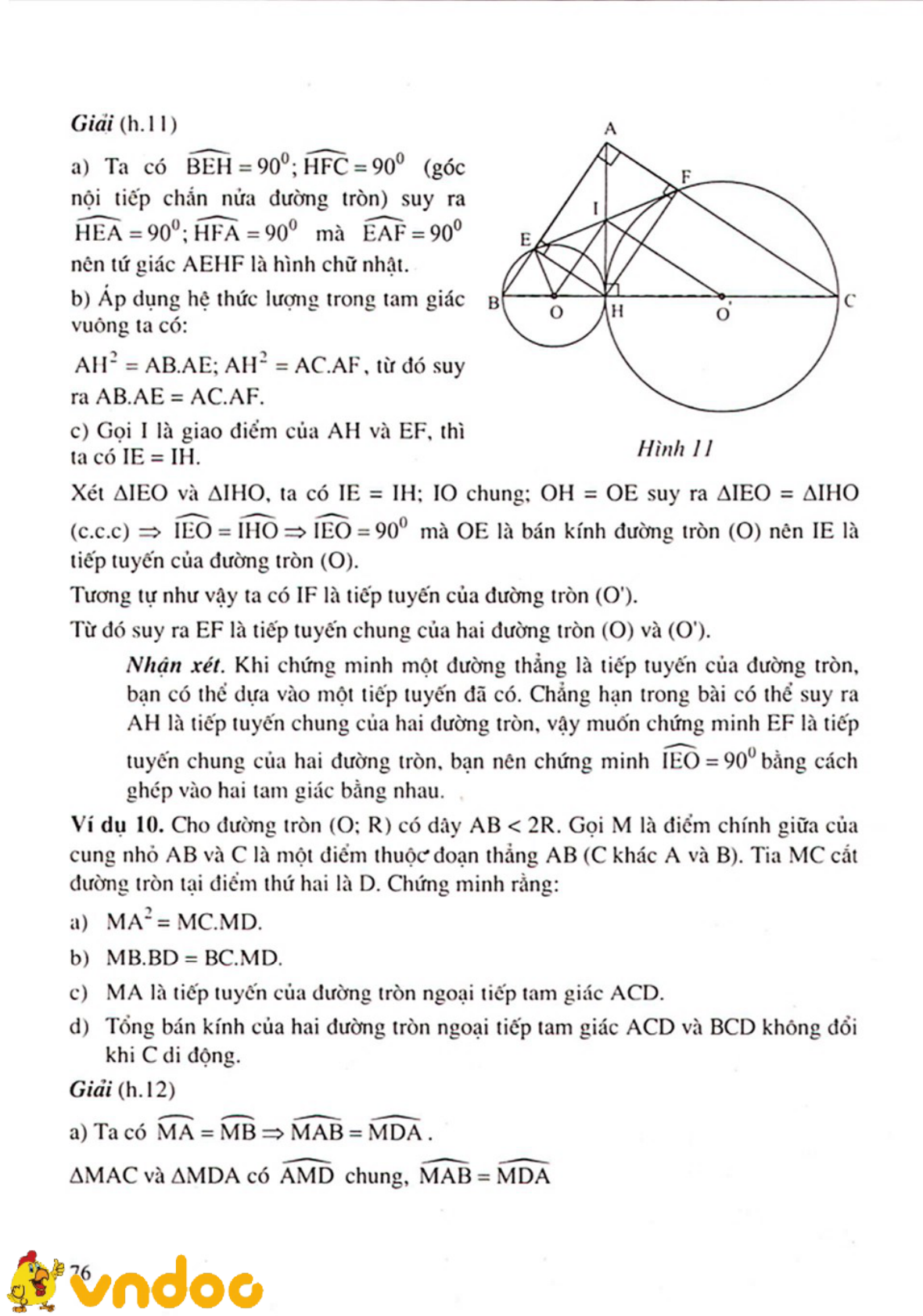 Bài 1. Cho tam giác ABC vuông tại A có AH là đường cao. Vẽ hai đường tròn (O) và (O') có đường kính lần lượt là BH và CH. Các đường tròn trên cắt AB và AC lần lượt tại E và F. Chứng minh rằng: