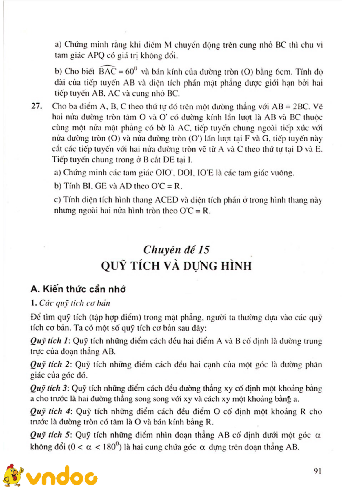 Ôn thi vào lớp 10 chuyên đề 15: Quỹ tích và dựng hình được VnDoc.com sưu tầm nhằm giúp quá trình ôn tập và củng cố kiến thức chuẩn bị cho kì thi học kì mới môn Toán của các bạn học sinh lớp 9 trở nên thuận lợi hơn. Mời các bạn tham khảo