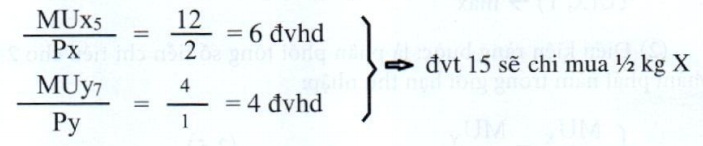 \(\frac{MU_{X5}}{P_X} = 6 đvhd < \frac{MU_{Y6}}{P_Y} = 7 đvhd\) (không thỏa điều kiện (3.5))