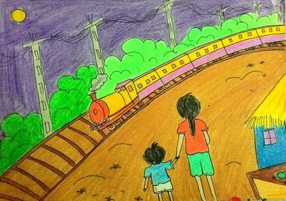 - Khi đoàn tàu đến, Liên dắt em đứng dậy để nhìn đoàn xe vụt qua