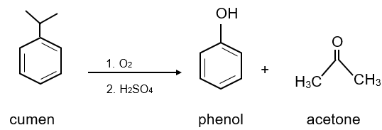 Trong công nghiệp phenol dược điều chế bằng cách: oxi hóa cumene (isoproylbenzene) nhờ oxygen trong không khí, sau đó thủy phân bằng dung dịch H2SO4 loãng