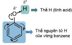 Trong phân tử phenol, do ảnh hưởng của vòng benzene nên liên kết O – H của phenol phân cực mạnh hơn so với alcohol, vì vậy phenol thể hiện tính acid yếu.