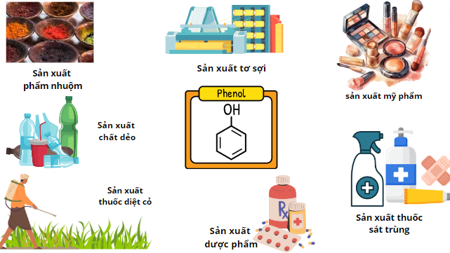 Một số ứng dụng của phenol được thể hiện trong sơ đồ sau: