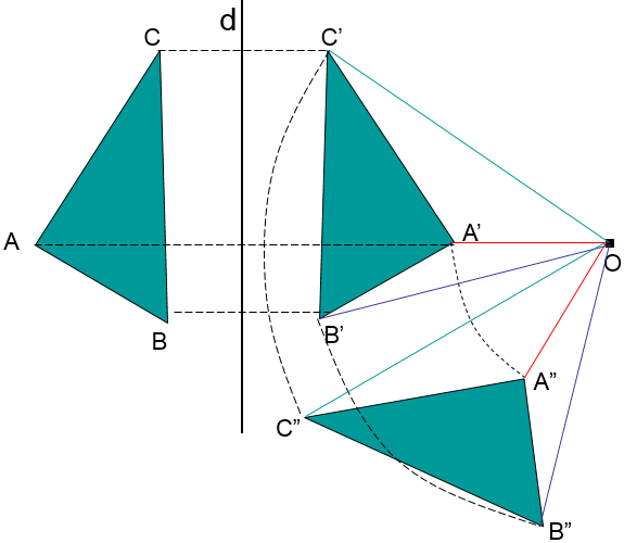 2) Biến đường thẳng → đường thẳng, tia → tia, đoạn thẳng → đoạn thẳng bằng nó.
