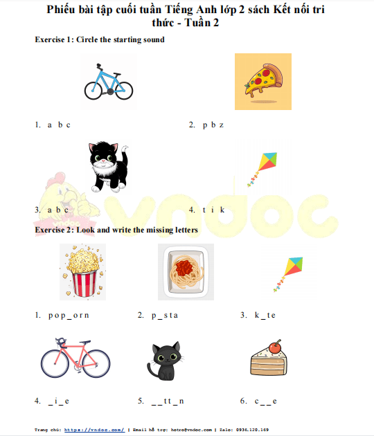 Tài liệu Phiếu bài tập cuối tuần Tiếng Anh lớp 2 sách Kết nối tri thức - Tuần 2 nằm trong bộ tài liệu Tiếng Anh lớp 2 sách Kết nối tri thức do VnDoc.com sưu tầm và đăng tải. VnDoc.com hy vọng rằng đây sẽ là tài liệu ôn tập tiếng Anh 2 sách Tiếng Anh lớp 2 hiệu quả.