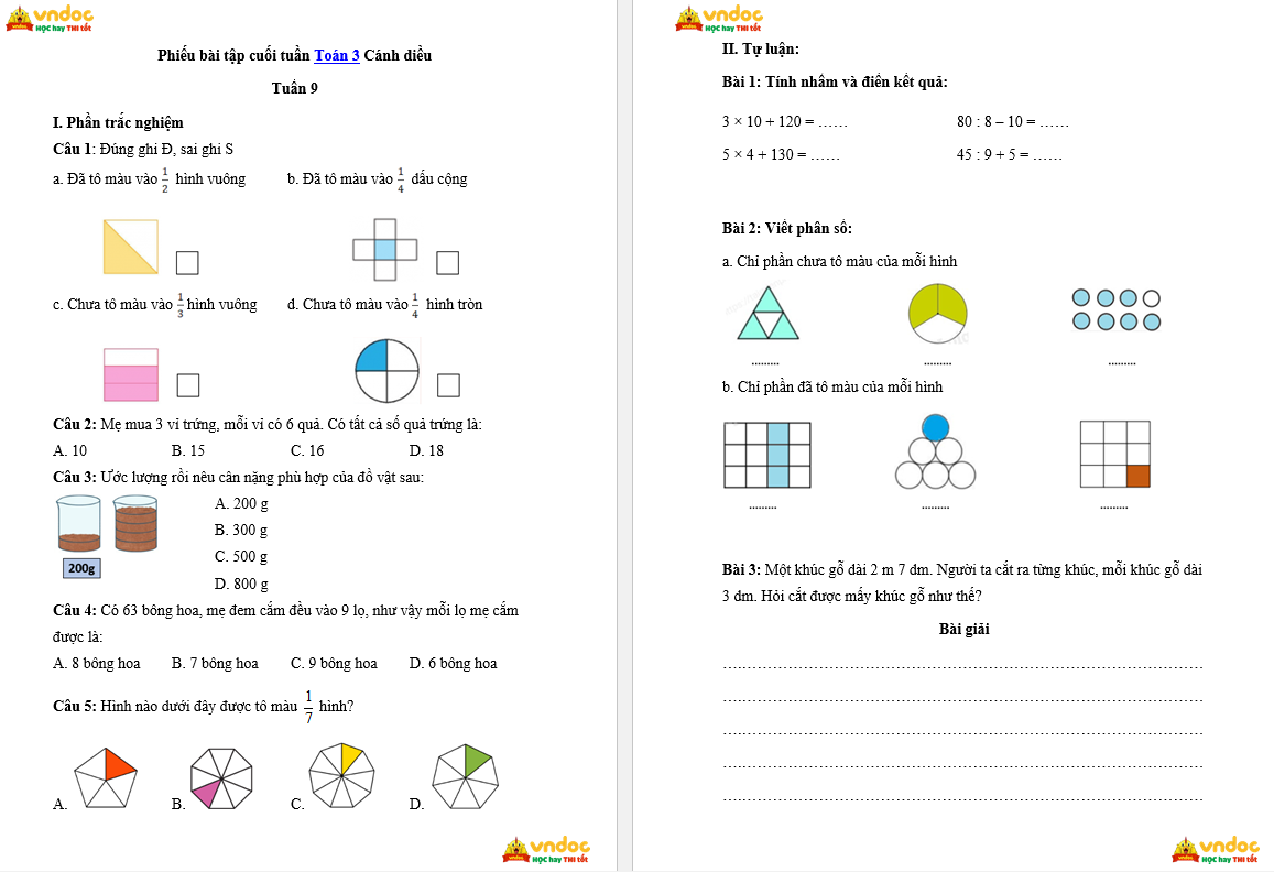 >> Xem thêm: Bài tập cuối tuần Toán lớp 3 Cánh diều - Tuần 9 (nâng cao)