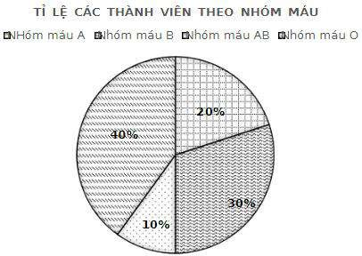 Bài 4. Biểu đồ hình quạt tròn sau cho biết tỉ lệ của một đội hiến máu gồm 100 tình nguyện viên mang nhóm máu 𝐴 và 𝐵. Hỏi: