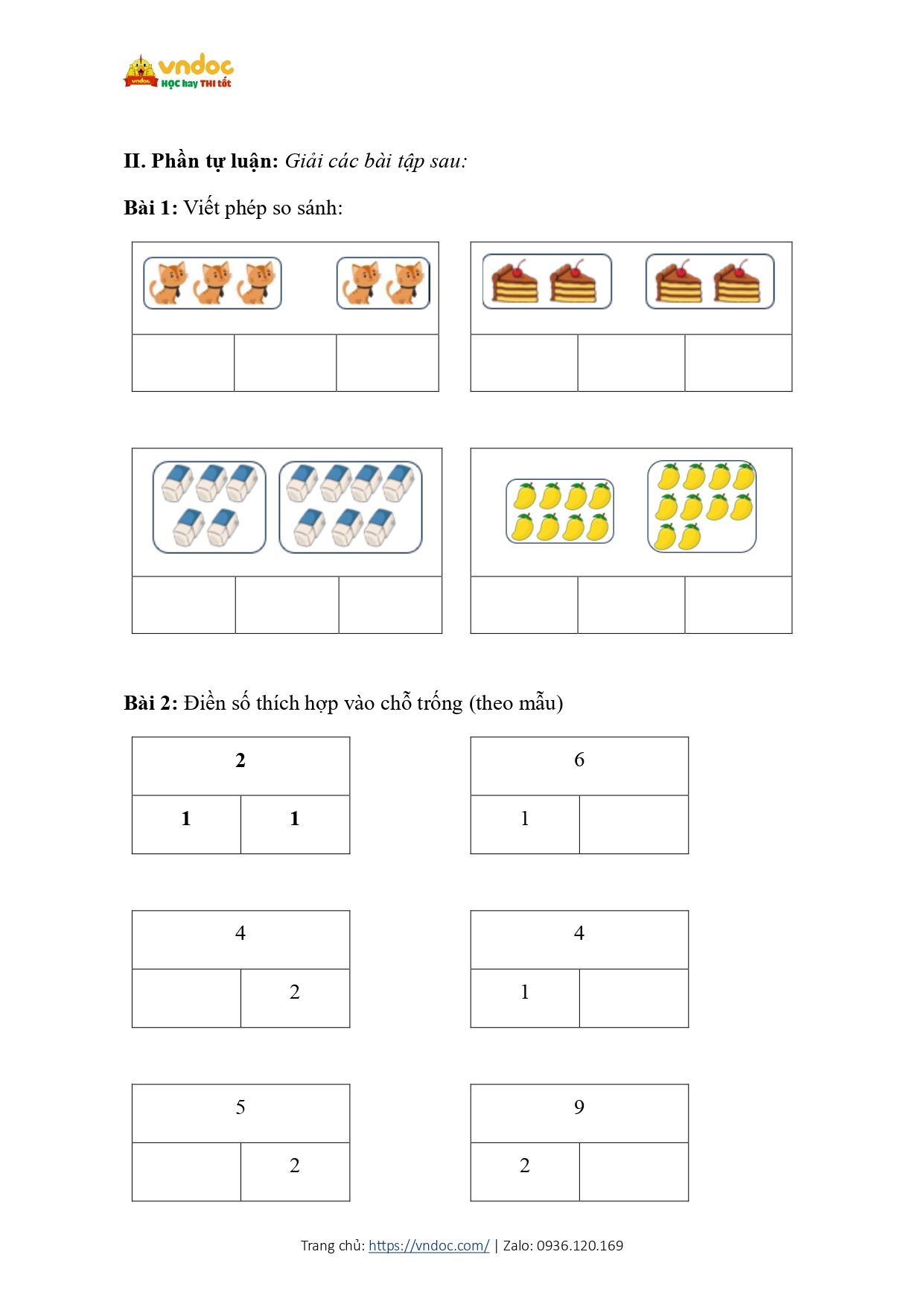 Phiếu bài tập cuối tuần Toán lớp 1 Kết nối tri thức - Tuần 5 (nâng cao)