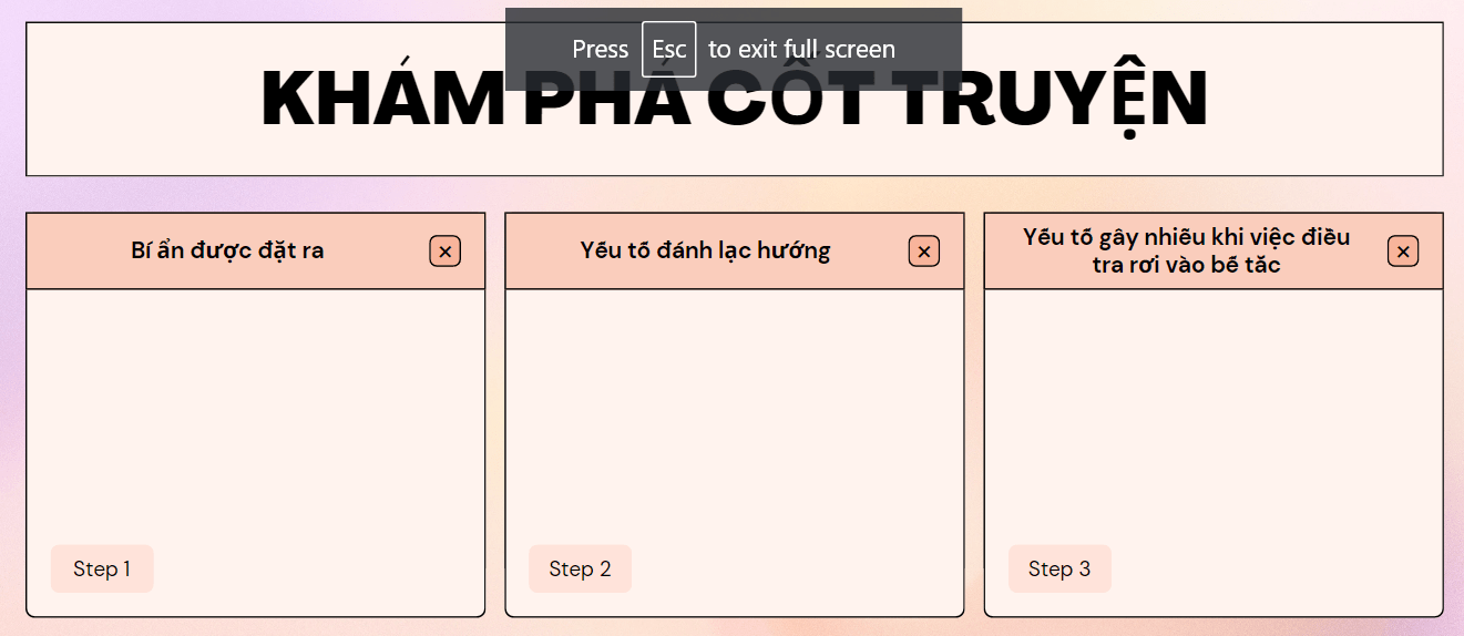 Tóm tắt chuỗi sự kiện của tác phẩm theo trật tự: vụ việc gây lo lắng, hoảng hốt – hành trình phá án của người điều tra – công bố sự thật. |