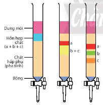 - Trong quá trình pha động dịch chuyển từ trên xuống dưới cột, chất có tốc độ dịch chuyển lớn hơn (nghĩa là bị hấp phụ trên pha tĩnh kém hơn) sẽ cùng với dung môi ra khỏi cột trước. Làm bay hơi dung môi sẽ thu được chất cần tách.