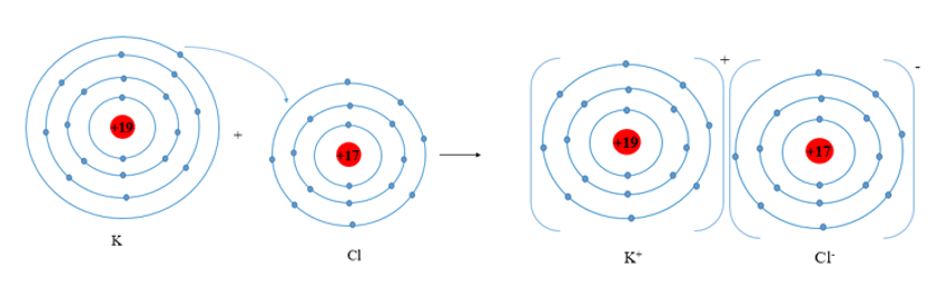 Hợp chất potassium chloride có loại liên kết gì trong phân tử? Vẽ sơ đồ hình thành liên kết có trong phân tử này.