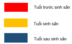 Mỗi quần thể gồm ba nhóm tuổi: nhóm tuổi trước sinh sản, nhóm tuổi đang sinh sản và nhóm tuổi sau sinh sản.