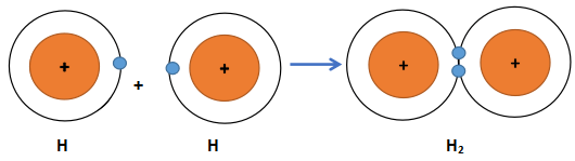Phân tử hydrogen (H2) được tạo nên bằng liên kết hóa học giữa hai nguyên tử hydrogen (H).