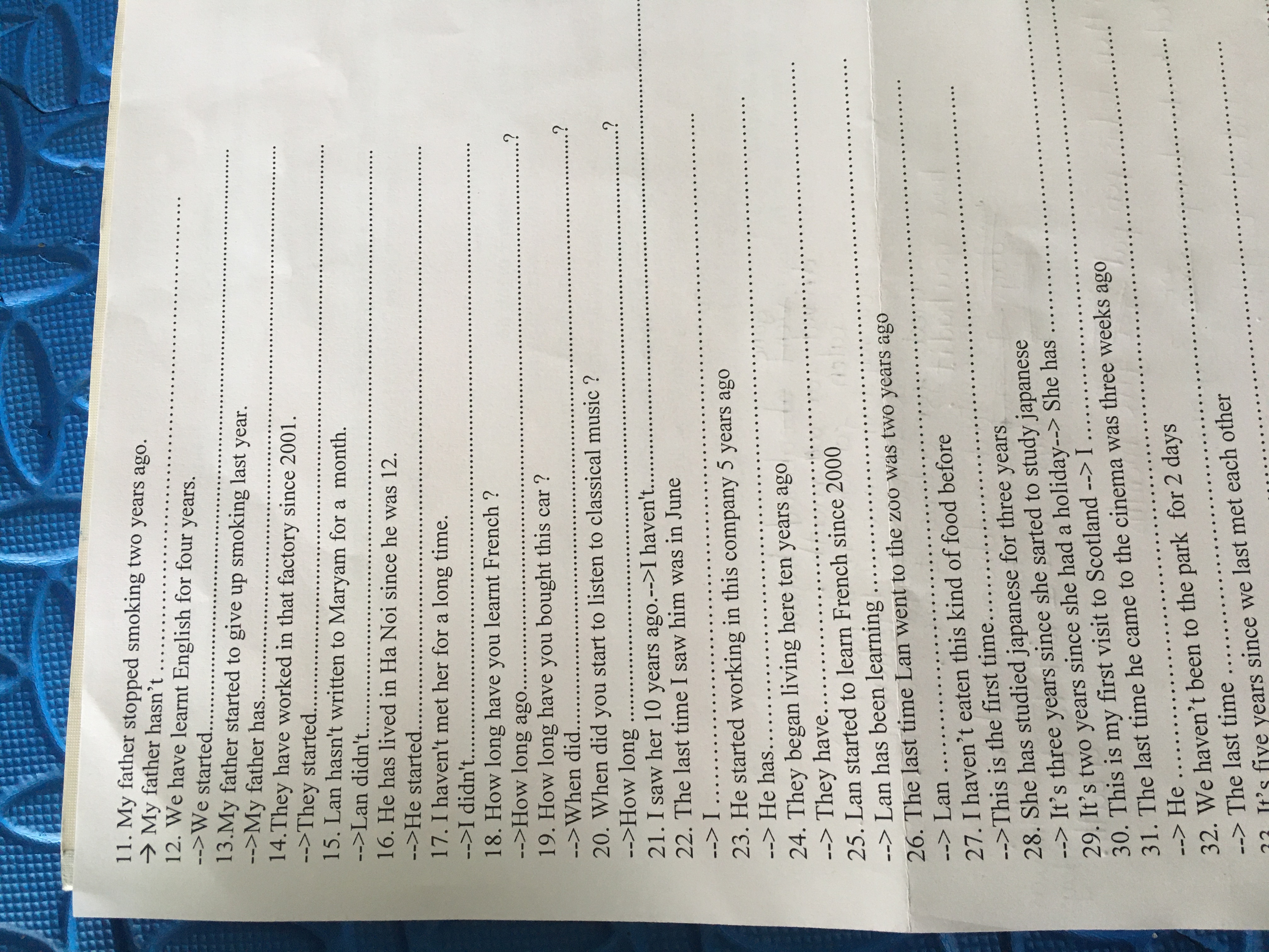 rewrite the following sentences with the words given