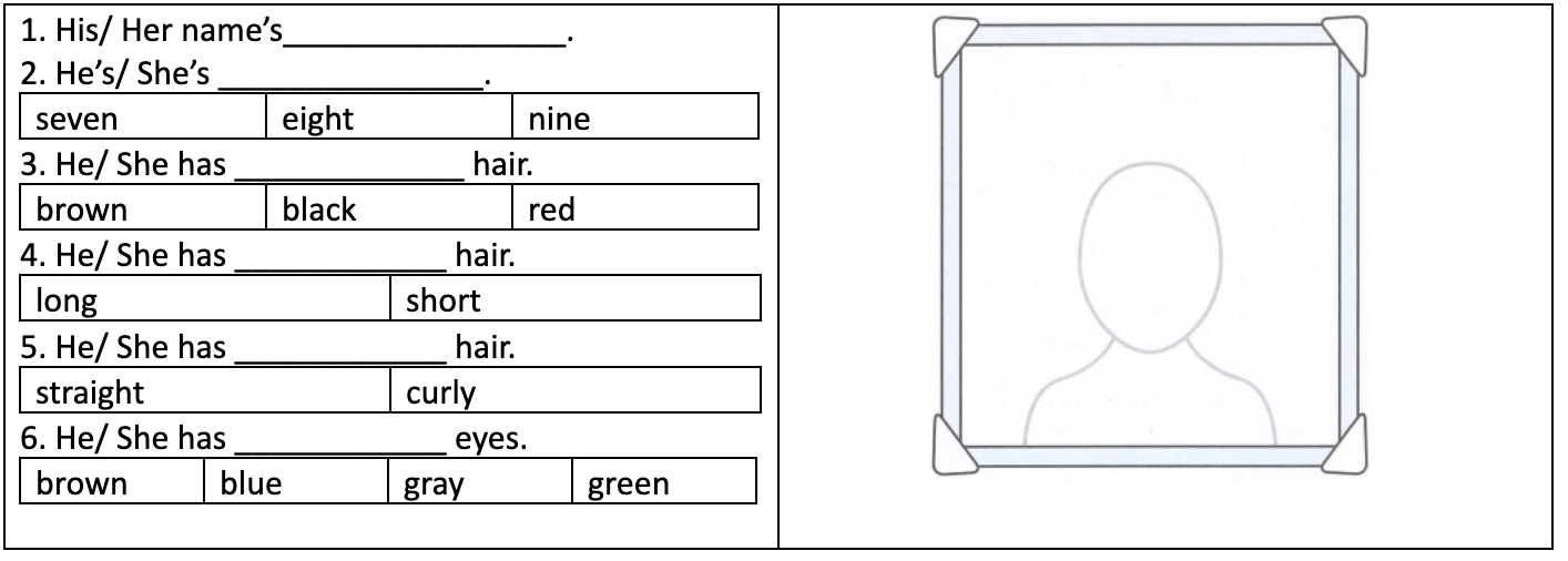1. Write your friend’s name. Circle the correct word and write. Then draw your friend. Viết tên bạn của em. Khoanh tròn vào từ đúng và viết. Sau đó vẽ lại bạn của mình.