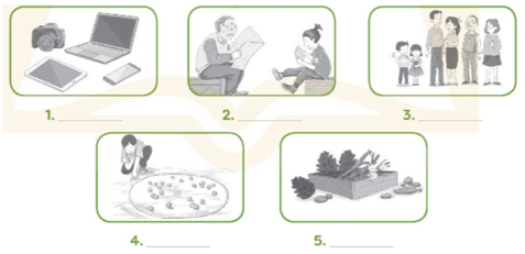 1. Write the correct phrases below under each picture. (Viết các cụm đúng vào dưới mỗi bức tranh.)