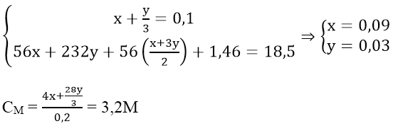 ne nhận = 3x + y = 4x, ne cho = 0,5 ⇒ 4x = 0,5 . Vậy x = 0,125 mol
