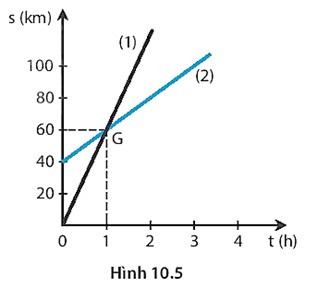 Bài 10.7 trang 34 SBT Khoa học tự nhiên 7: Hình 10.5 là đồ thị quãng đường – thời gian của một người đi xe đạp và một người đi mô tô. Biết mô tô chuyển động nhanh hơn xe đạp.