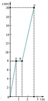 Bài 10.8 trang 34 SBT Khoa học tự nhiên 7: Một người đi xe đạp, sau khi đi được 8 km với tốc độ 12 km/h thì dừng lại để sửa xe trong 40 min, sau đó đi tiếp 12 km với tốc độ 9 km/h.