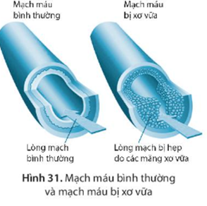 Bài 31.7 trang 72 SBT Khoa học tự nhiên 7: Ở những người có chế độ ăn nhiều dầu mỡ, ít vận động sẽ có nguy cơ mạch máu bị xơ vữa, có nhiều mảng bám làm cho lòng mạch hẹp lại. (Hình 31) Theo em, điều này ảnh hưởng như thế nào đến sự lưu thông máu trong mạch và sức khỏe của cơ thể? Để sự vận chuyển các chất trong cơ thể được thuận lợi, chúng ta cần có chế độ dinh dưỡng và vận động như thế nào?