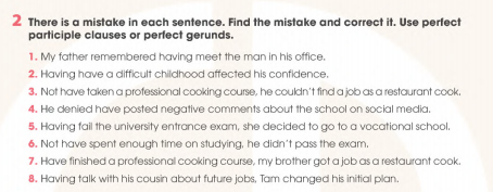 2. There is a mistake in each sentence. Find the mistake and correct it. Use perfect participle clauses or perfect gerunds.
