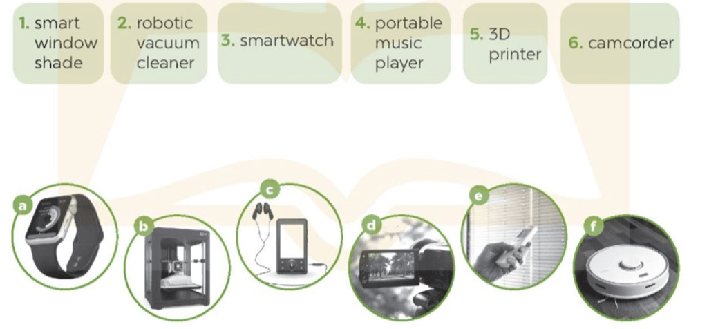 1. Match the electronic devices (1 - 5) with the correct pictures (a - e). (Nối các thiết bị điện tử (1 - 5) với các hình ảnh đúng (a - e).)