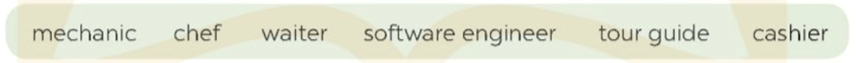 3. Choose a job from the box for each person. Write the appropriate job in the given space. (Chọn một công việc từ hộp cho mỗi người. Viết công việc thích hợp vào chỗ trống nhất định.)