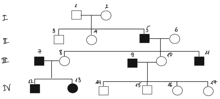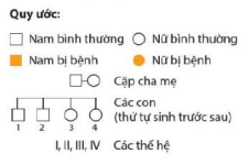 Dựa vào hệ thống quy ước, hãy lập sơ đồ phả hệ của gia đình bệnh nhân mù màu trên.