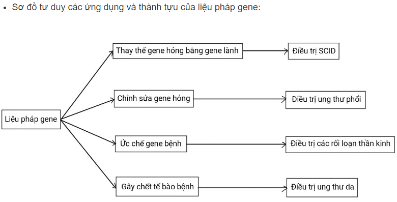 Luyện tập 2 trang 86 Sinh 12: Vẽ sơ đồ tư duy các ứng dụng và thành tựu của liệu pháp gene.