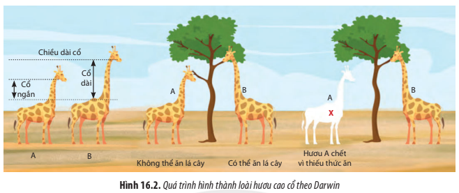Câu 2: Quan sát Hình 16.2, hãy cho biết vai trò của những cá thể có biến dị cổ dài trong quần thể hươu cổ ngắn đối với việc hình thành loài hươu cao cổ.