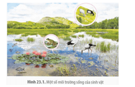 Loài chim ở Hình 23.1 sống ở môi trường cạn, do chúng chỉ kiếm ăn ở các vùng đất ngập nước còn những nhu cầu sống thiết yếu khác được lấy từ môi trường cạn.