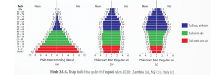 Câu hỏi 2 trang 133 Sinh học 12: Quan sát Hình 24.6, dựa vào cấu trúc tuổi của mỗi quần thể để dự đoán xu hướng tăng trưởng trong tương lai của quần thể đó.