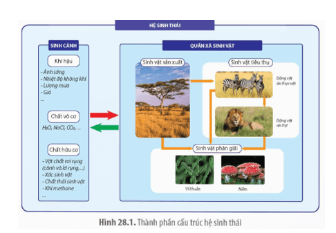 Câu hỏi 2 trang 153 Sinh học 1: Dựa vào Hình 28.1, hãy chỉ ra mối quan hệ giữa các nhóm sinh vật trong quần xã và giữa quần xã với sinh cảnh.