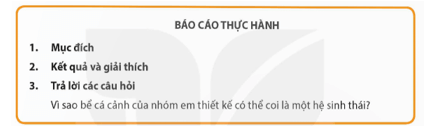 - Thiết kế được một bể nuôi cá cảnh vận dụng hiểu biết hệ sinh thái.