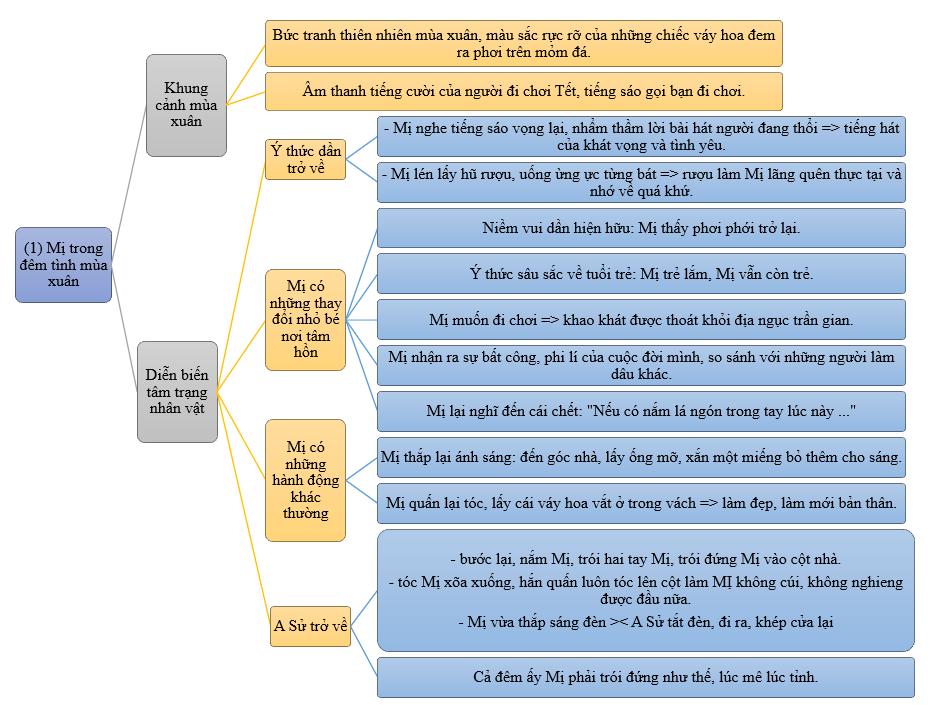 Sơ đồ tư duy Diễn biến tâm trạng Mị trong đêm tình mùa xuân