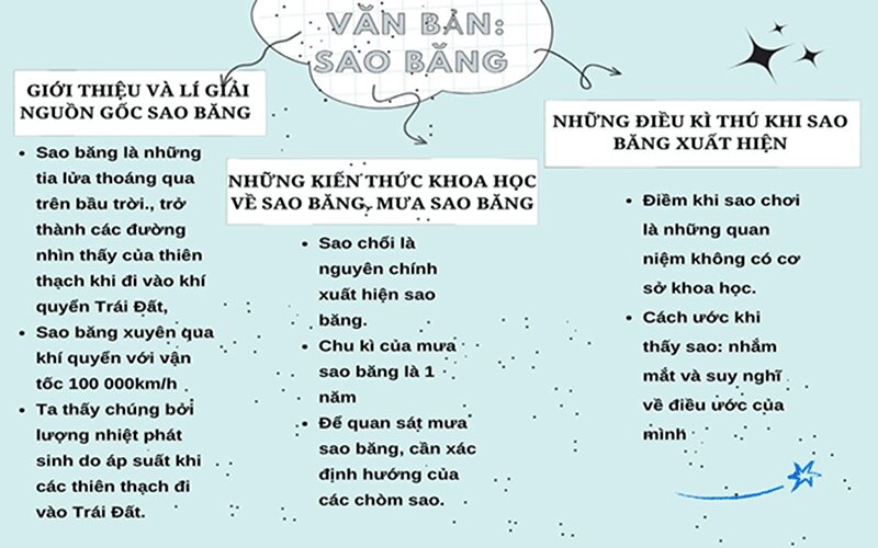 Người viết đã triển khai ý tưởng và thông tin trong bài theo cách nào? Tóm tắt các thông tin chính trong văn bản Sao băng bằng một sơ đồ tư duy.