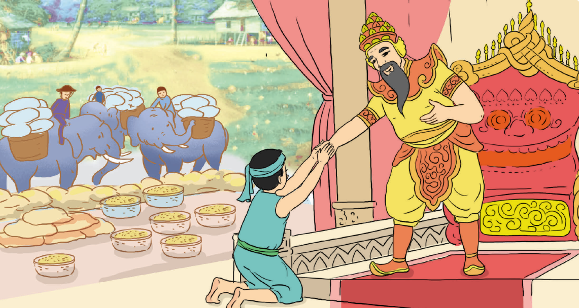 – Trước khi phát thóc giống, ta đã cho luộc kĩ rồi. Lẽ nào thóc ấy còn mọc được? Những xe thóc đầy ắp kia đâu phải thu được từ thóc giống của ta!