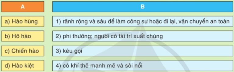 Ghép tiếng “hào” trong các từ ở cột A với nghĩa phù hợp ở cột B: