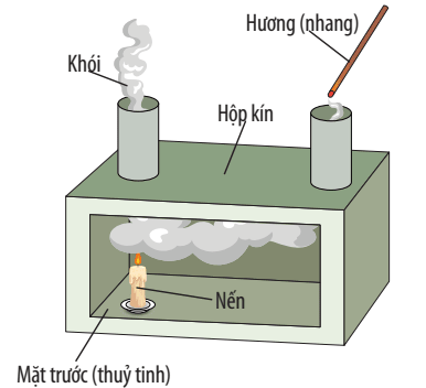 Trong thí nghiệm bố trí như trên, khi đốt nến và hương, ta thấy dòng khói từ hương đi xuống vòng qua rồi đi lên phía trên ngọn nến.
