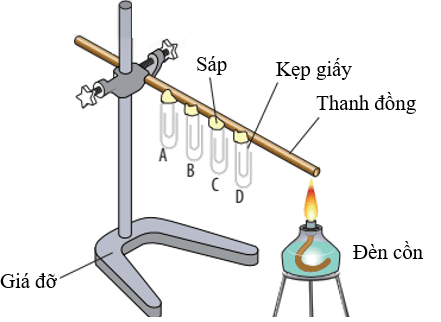 Hình 1: Bố trí thí nghiệm tìm hiểu sự dẫn nhiệt