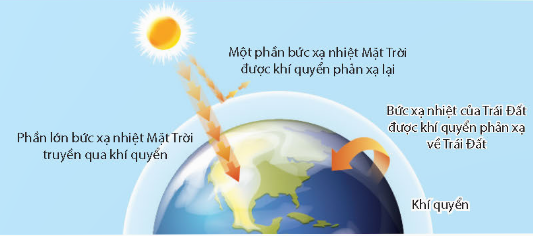 Bầu khí quyển bao quanh Trái Đất giữ lại bức xạ nhiệt của Trái Đất làm cho bề mặt của Trái Đất và không khí bao quanh nóng lên.