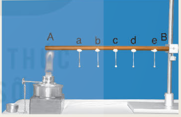 Khi đầu A của thanh đồng AB được đốt nóng trong thí nghiệm, các nguyên tử đồng ở đầu A chuyển động nhanh lên, động năng tăng. Khi chúng va chạm với các nguyên tử bên cạnh có động năng nhỏ hơn, các nguyên tử ở đầu A truyền bớt động năng cho các nguyên tử này làm cho động năng của chúng tăng. Thông qua va chạm các nguyên tử truyền năng lượng từ đầu A đến đầu B của thanh đồng.