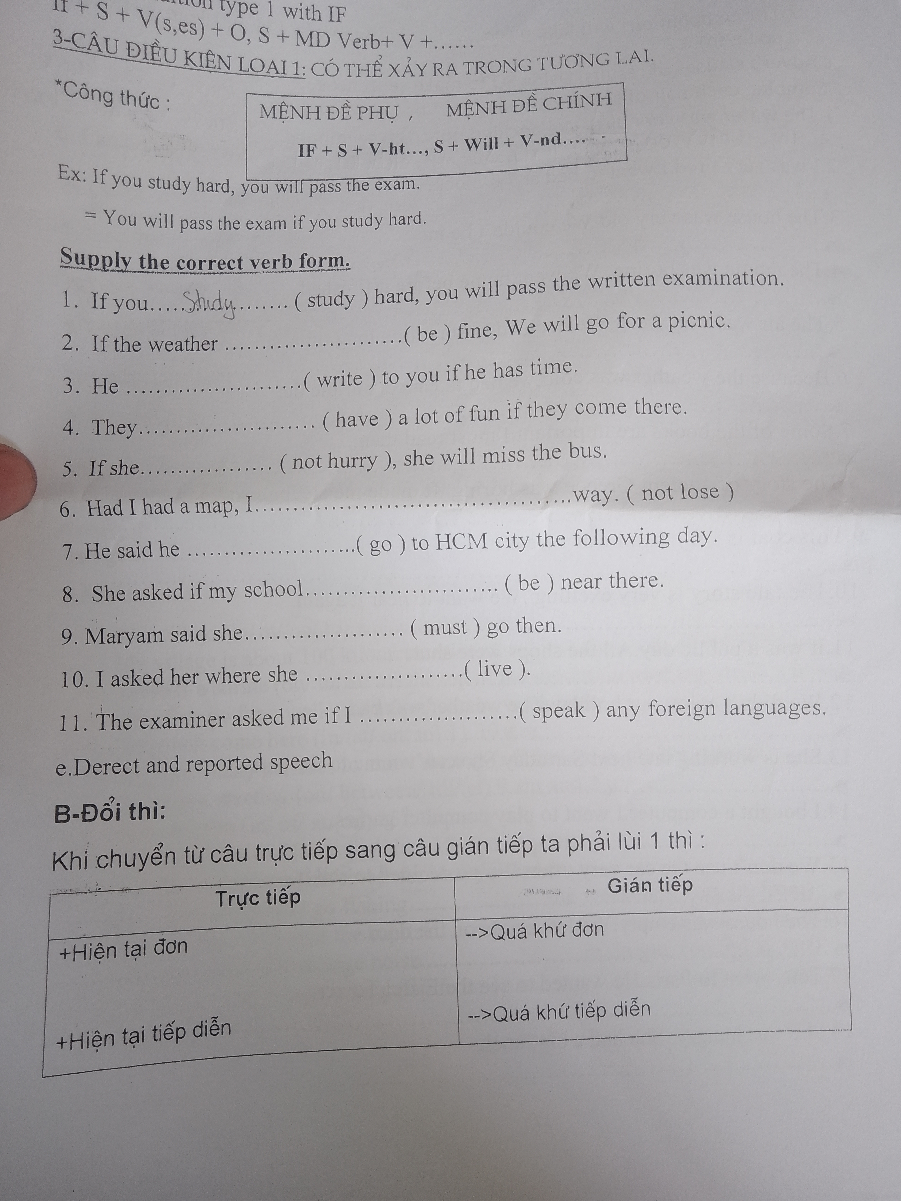 Supply the corect verb from giúp e giải bài này với ạ