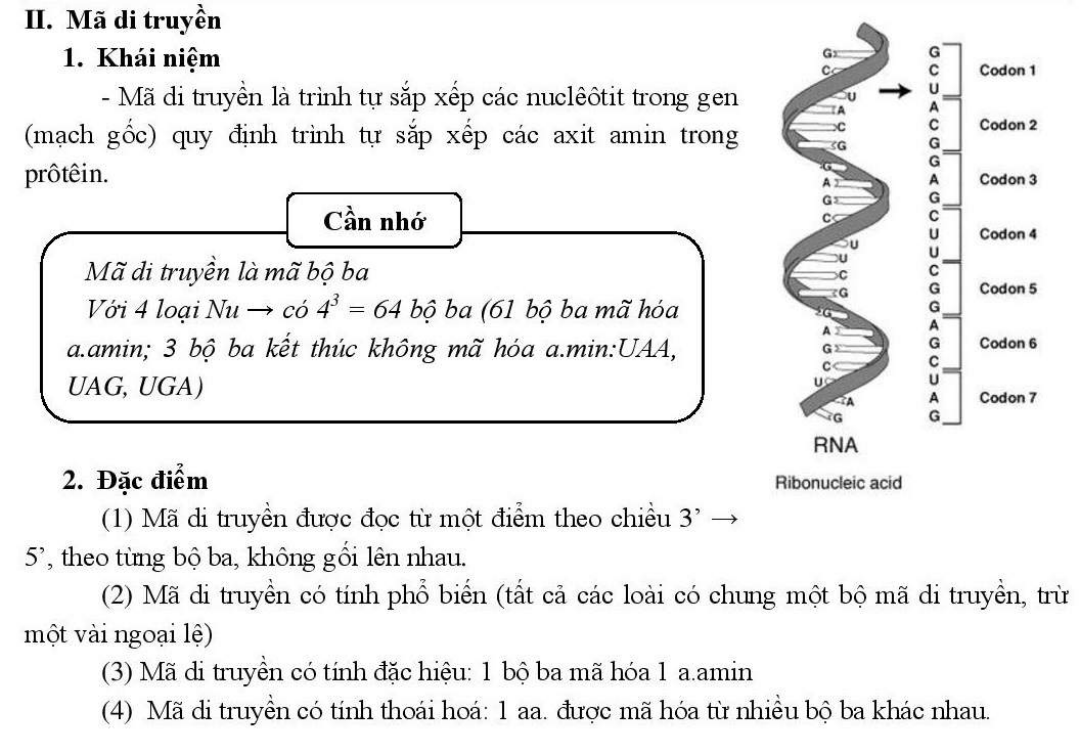 Tài liệu tóm tắt lý thuyết Sinh học lớp 12