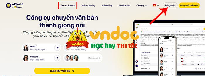 Bước 1: Đăng ký và đăng nhập vào tài khoản Vbee theo link dưới đây, chọn Text to Speech để sử dụng tính năng chuyển văn bản thành giọng nói .
