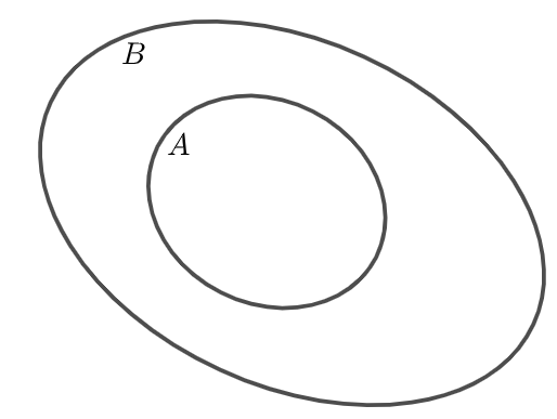 \(A \subset B \Leftrightarrow \forall x,x \in A \Rightarrow x \in B\).